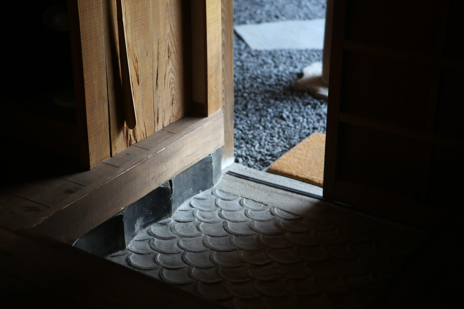 - 青海波の玄関に腰を下ろし、夕暮れの風を感じる