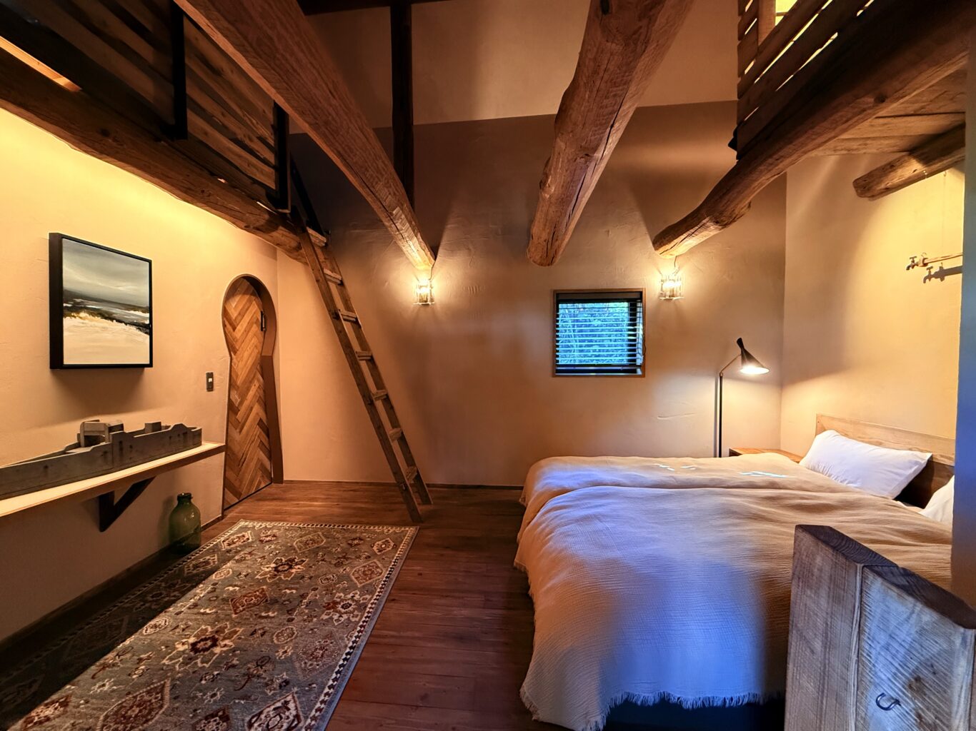 ロフトには、羽毛を使った手作りのブルーソファーと、ツリーハウスのような籠り部屋があります。まるで子どもの頃に戻ったように、無邪気に遊ぶような時間が過ごせます。