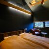 農機具置き場だった頃の面影は、今も随所に残されています。みかん箱を利用した収納や、梁に刻まれた古い傷跡。そうした痕跡をあえて残しながら、新しい家具や調度を迎え入れました。ベッドやソファは大工による造作、そのほかはアンティークショップから調達し、過去と現在の時間を同じ部屋で味わえるようにしています。